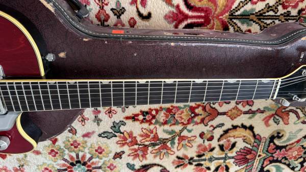 This one appears to be original, has great playability and offers really sweet tones! Frets have lots of life. The general condition is quite good but it has dents/finish checking on the body like most guitars of this vintage. It comes with the original case which is in rough shape but works fine.