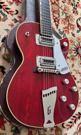 The Gretsch Roc Jet was made in the 1970's and featured a floating tailpiece and a pair of Gretsch's SuperTron humbuckers, and came in a variety of finishes. The cherry red Roc Jets seem to be quite rare and don’t come up that often.